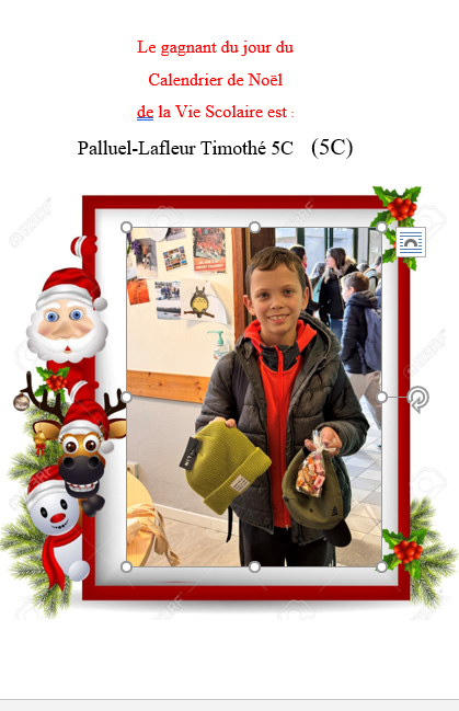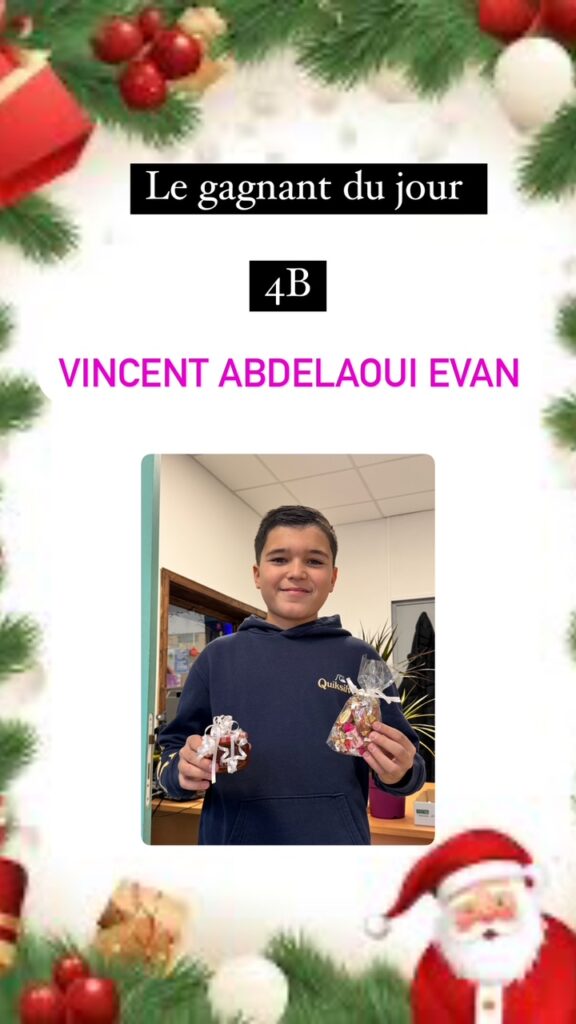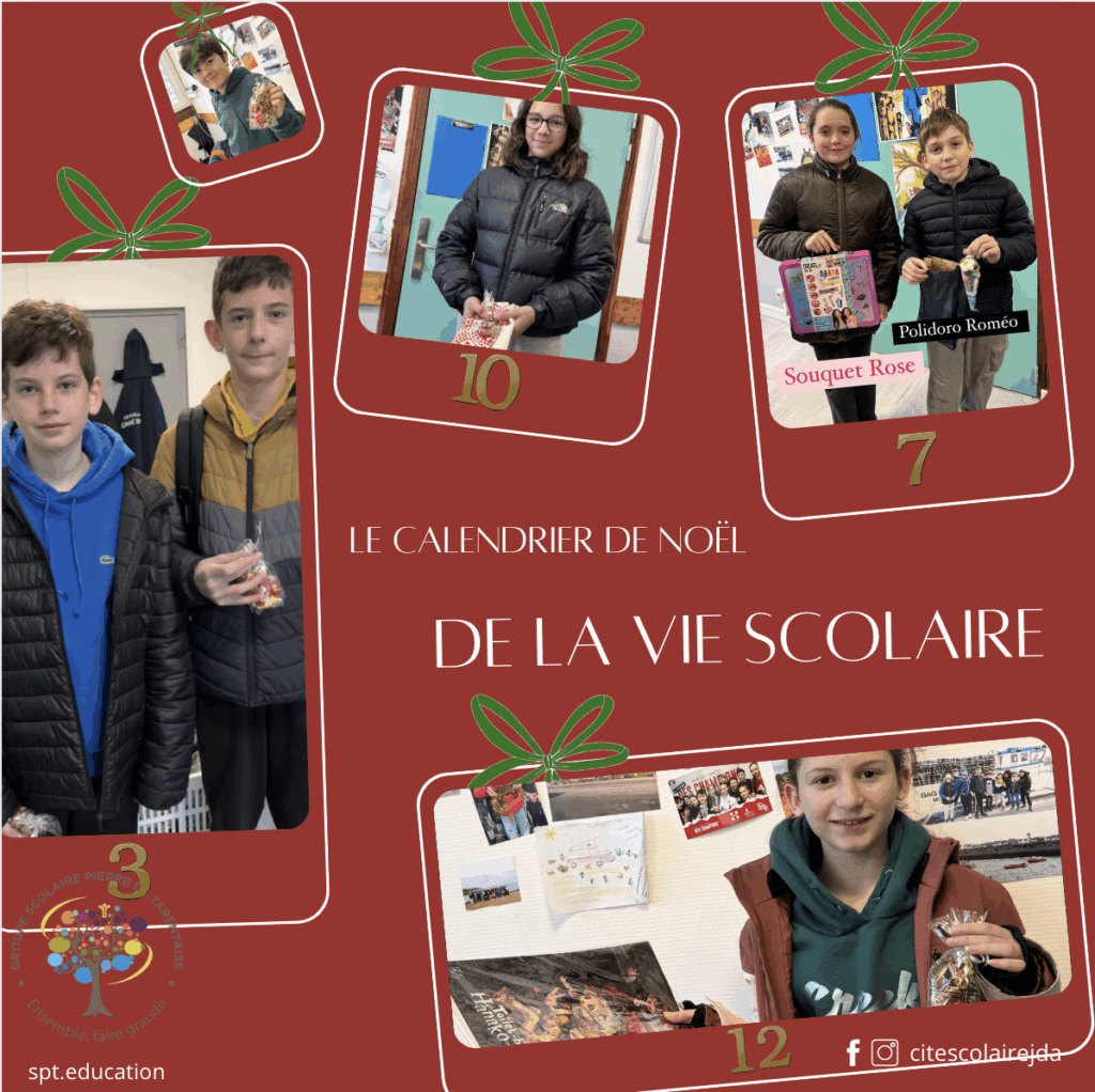 Calendrier de Noël de la vie scolaire Auteur/autrice de la publication :Communication Publication publiée :3 octobre 2025 Post category:Quoi de neuf au collège ? Read more articles Article précédentArticle précédent Article suivantConcours pull de Noël Vous devriez également aimer Projet RAM 24 juin 2022 Club MANGA Visite la librairie l’Accrolivres 6 mars 2023 Journées Portes Ouvertes 17 Mars 2022 24 mars 2022