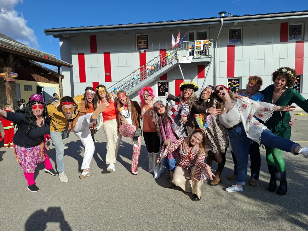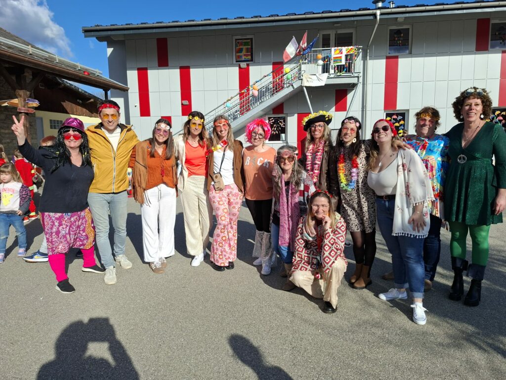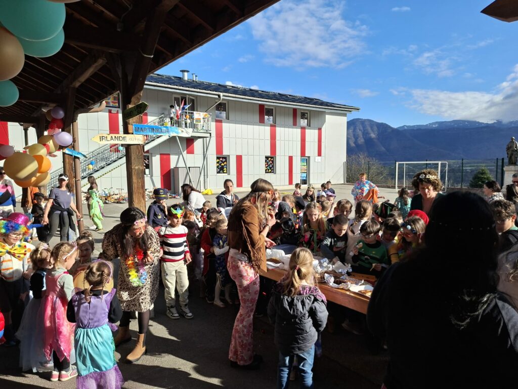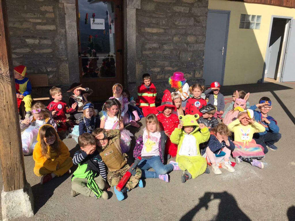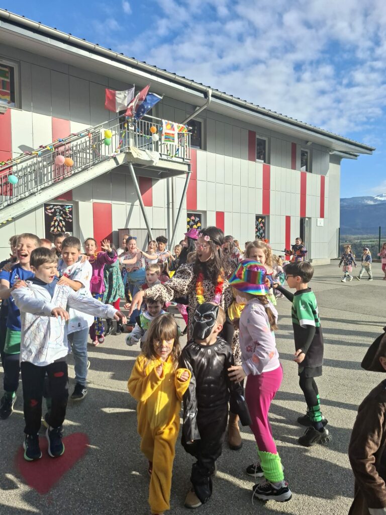 Jeudi 12 mars, toute l’école était déguisée à l’occasion de la mi-carême. Défilé par classe, danse, chanson, chorégraphie, mots des maux brulés dans le jardin, goûter gargantuesque ont ponctué cet après midi festive.