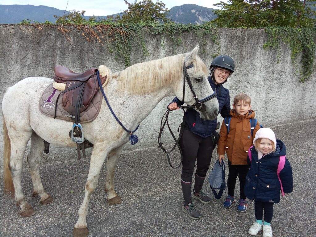 Nous suggérons à notre coordinatrice une nouvelle catégorie:la venue la plus originale… puisque cette année, une fratrie est venue à cheval.