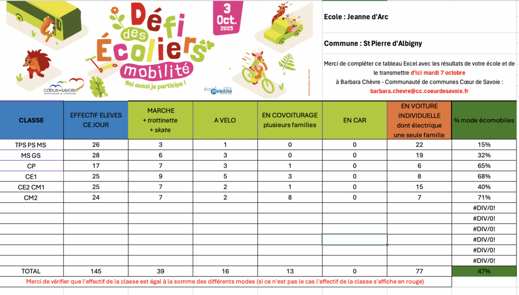 La communauté des communes « coeur de Savoie » organisait son défi écomobilité inter-écoles pour la 5ème édition. L’objectif étant d’aller à pied, à trottinette, à vélo, en covoiturage pour démarrer l’année avec de bonnes habitudes et pourquoi pas des partenariats entre familles qui débutent grâce à cette journée là.