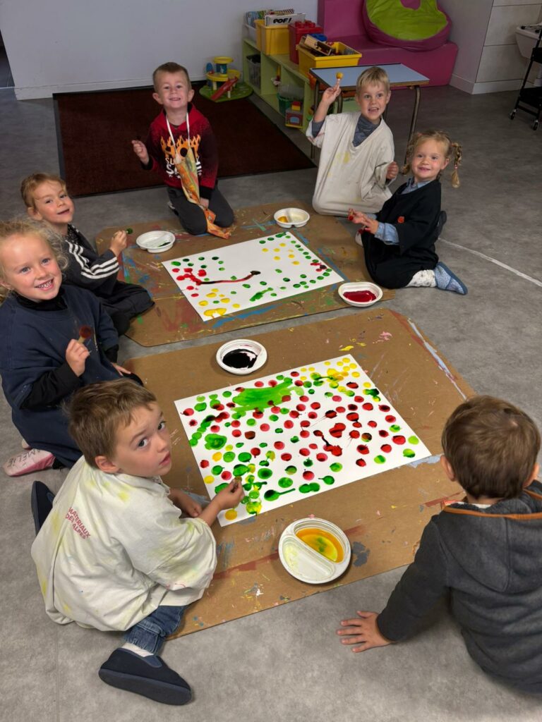 La classe des TPS PS et MS a travaillé durant cette première période sur le thème de l’automne. A travers les ateliers, nous avons appris à compter, à créer des collections de 1 objet ou 4 objets pour les plus grands. Nous avons aussi appris de nouveaux mots de vocabulaire sur le thème de l’automne grâce aux nombreux trésors apportés en classe (pommes de pin, châtaignes, glands, feuilles, branches … Merci aux parents et grands-parents !). Nous avons aussi beaucoup manipulé, dessiné, chanté, cuisiné et créé de belles productions ! Bravo aux enfants pour leur travail personnel et en équipe !