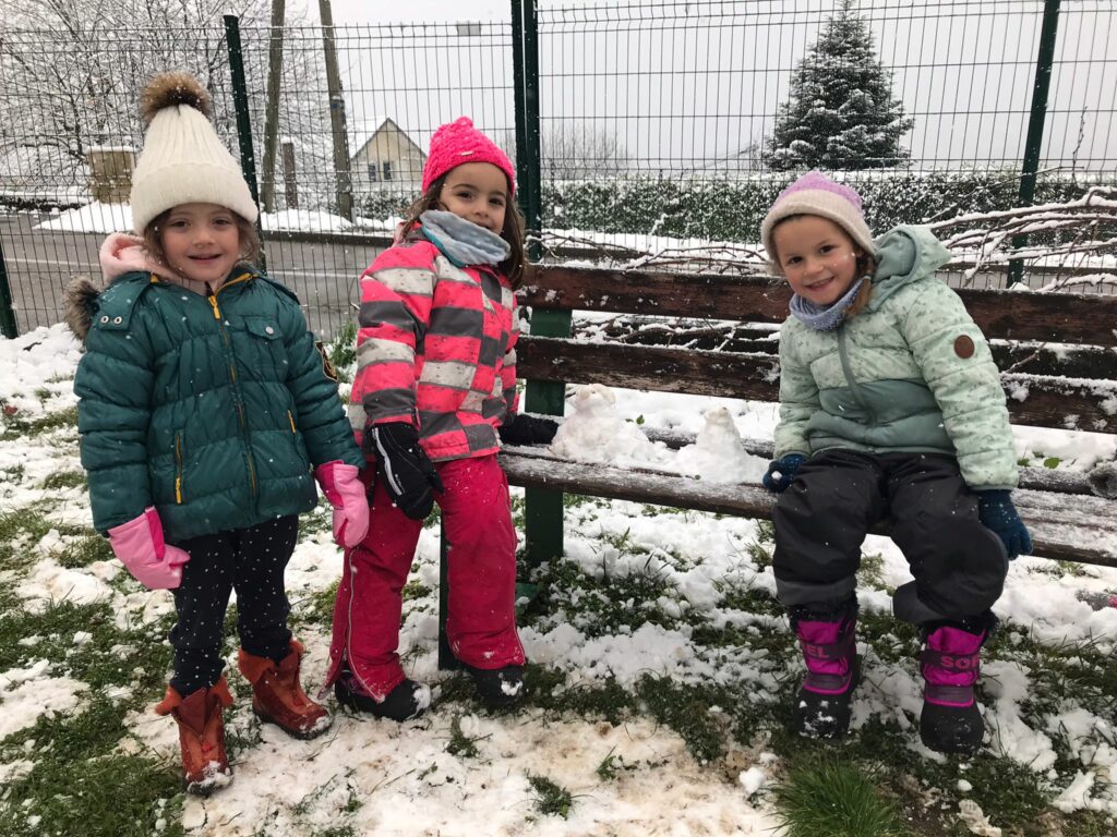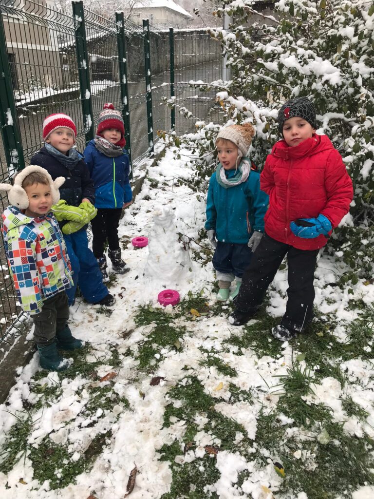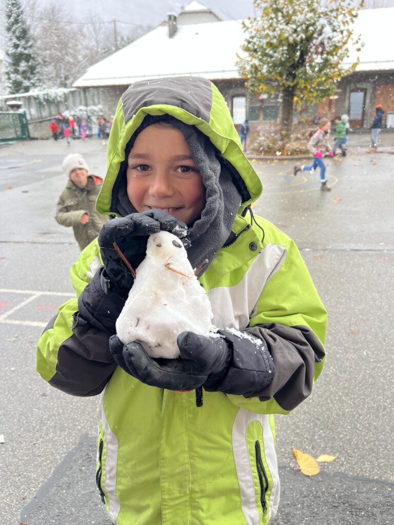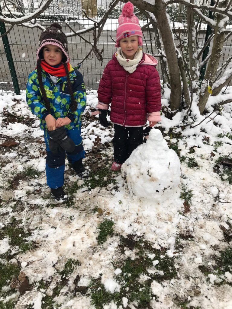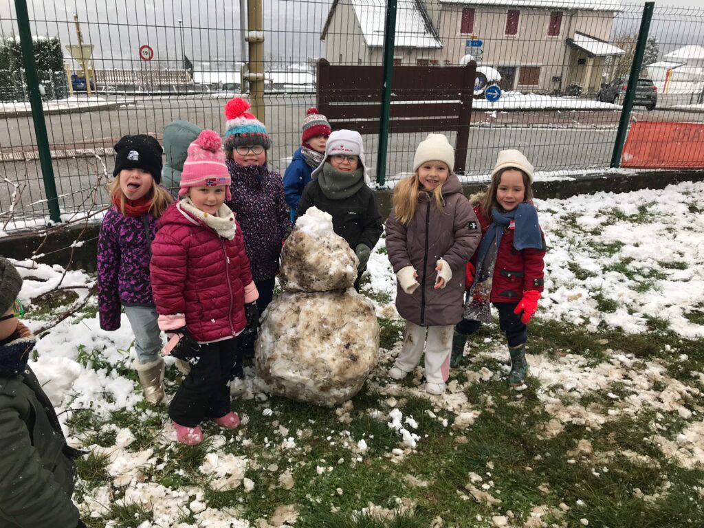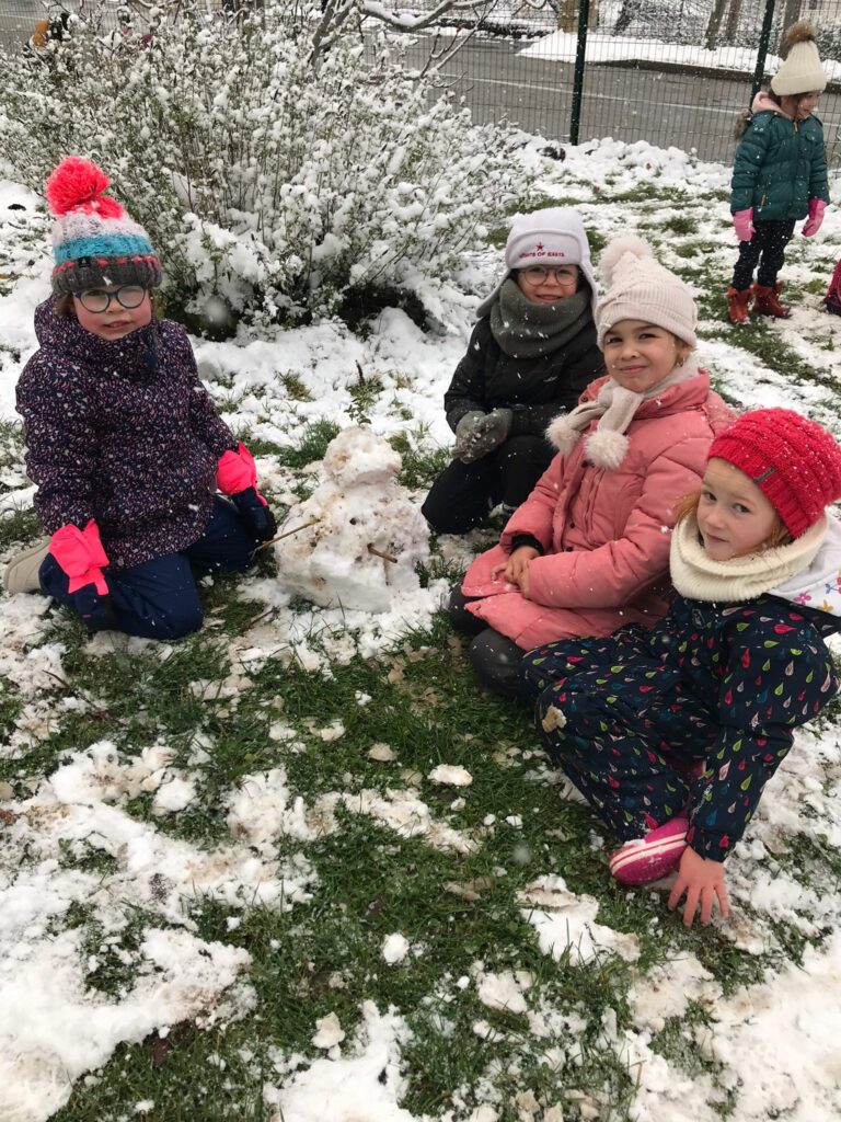 Les élèves ont profité de la neige pour faire un concours de bonhomme de neige.